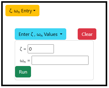 - Click on 'Enter ζ , ωn Values' dropdown button. Enter the values of damping ratio (ζ)and natural frequency (ωn). Click on 'Run' button in the dropdown-menu to get the Pole Map of S plane and Z plane. Plot can be downloaded by clicking on 'Download' button.